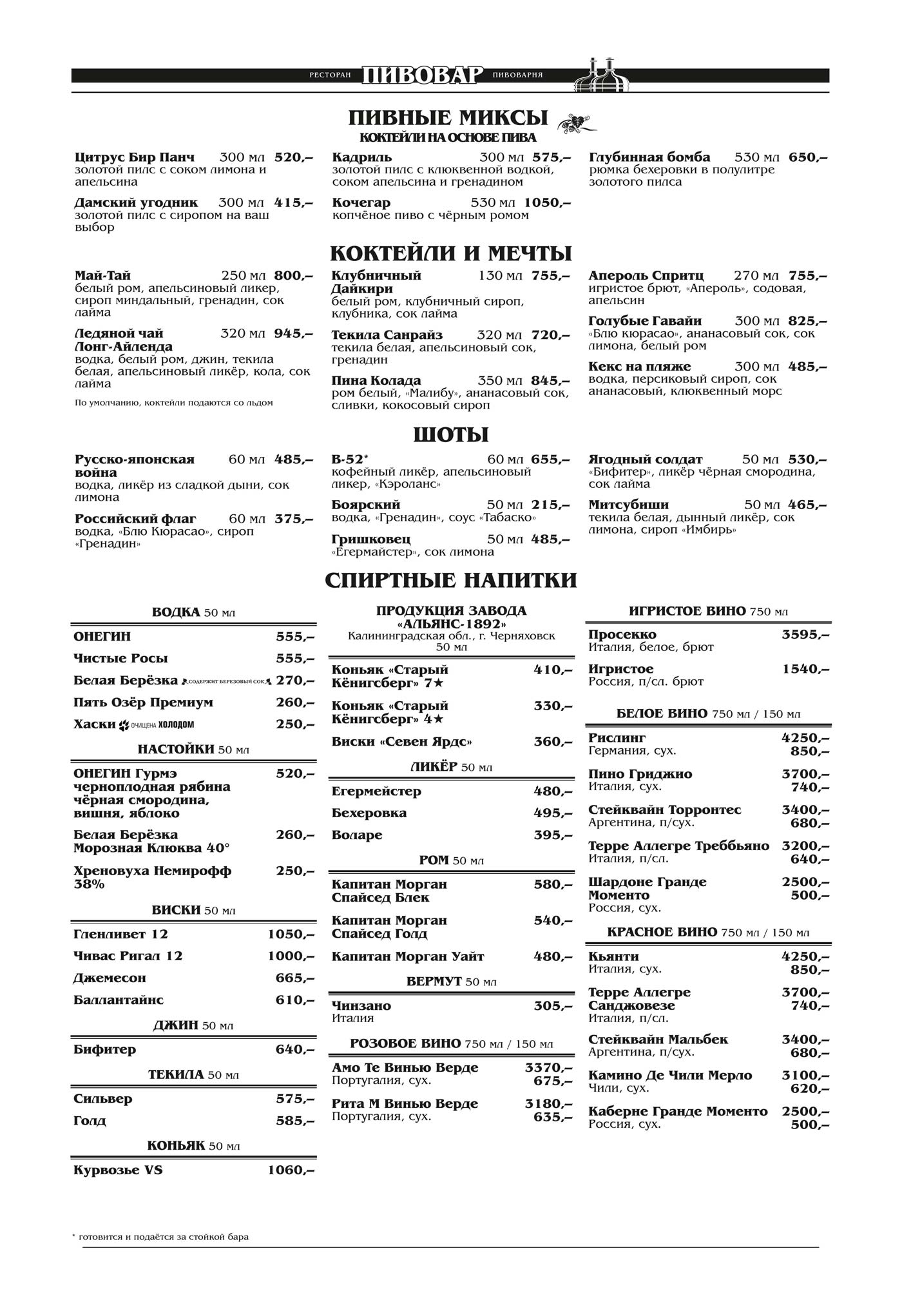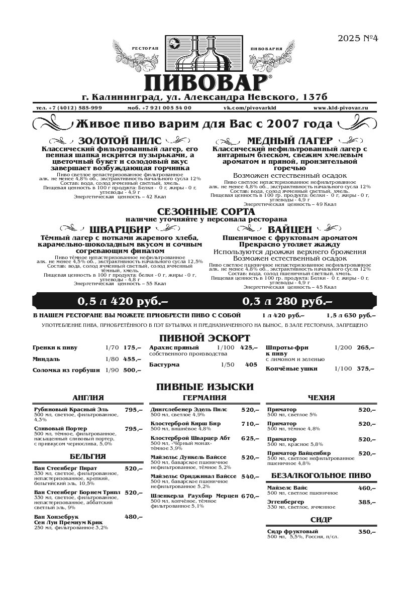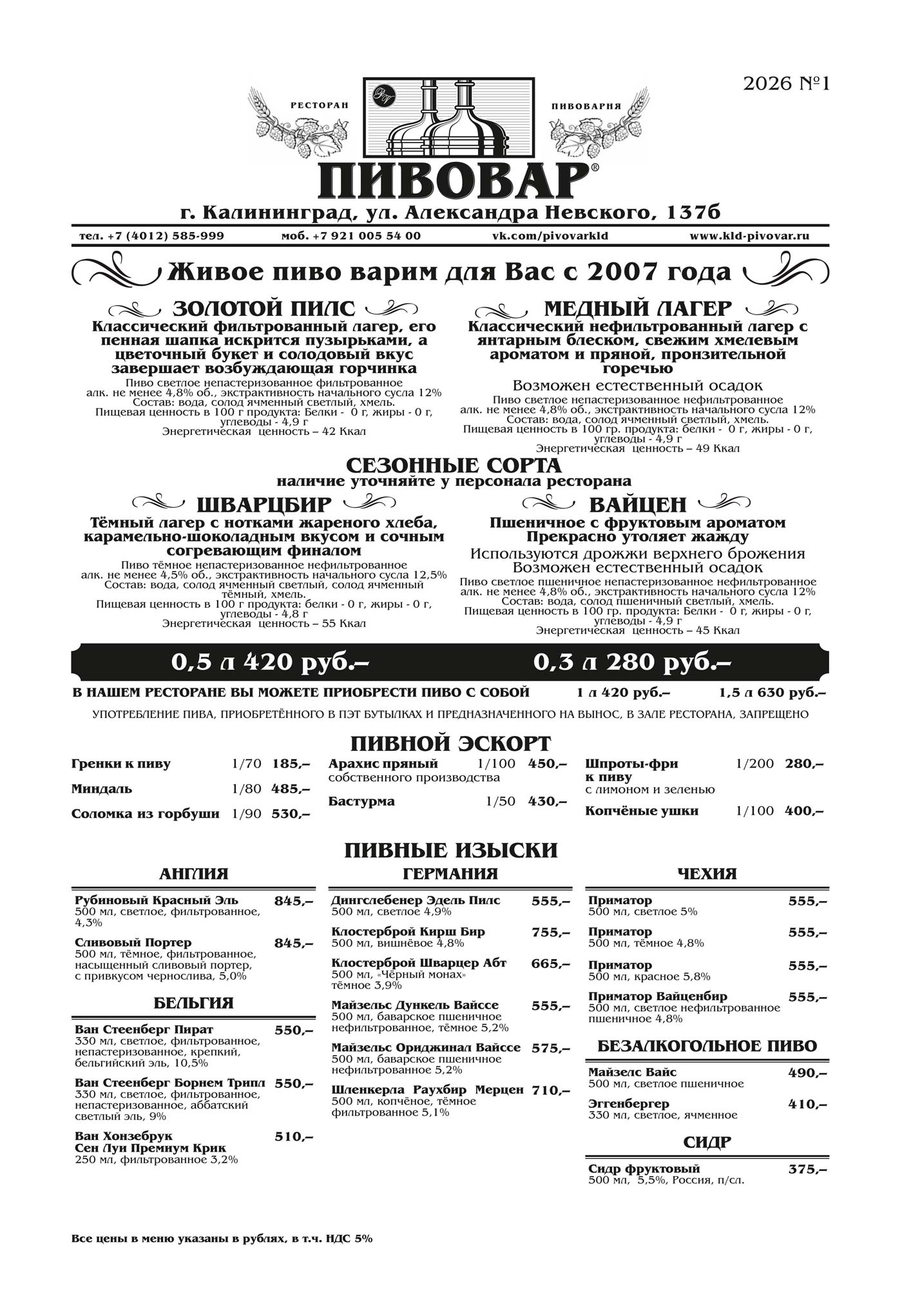 Отведать пива знатного приглашаем в ресторане ПИВОВАР® в Калининграде - пиво охлажденное, свежее, живое, светлое и темное да разливное...